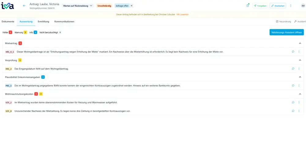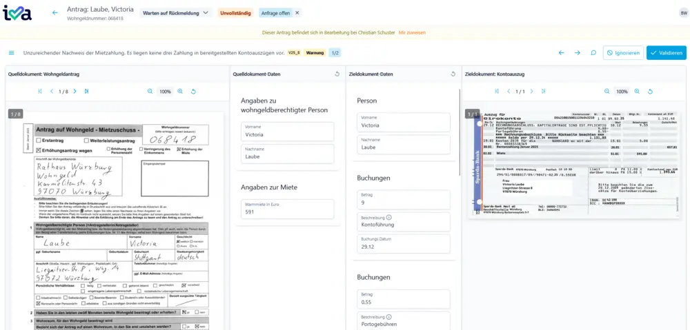 - Die finale Entscheidung obliegt immer den Sachbearbeitenden: Iva unterstützt, übernimmt aber keine abschließende Bewertung.