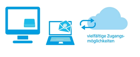 Ob über Browser, Laufwerk, Desktop Client oder Outlook Add-in: Mit den vielfältigen Zugangsmöglichkeiten bietet Ihnen KommSafe immer schnell Zugriff auf Dateien.