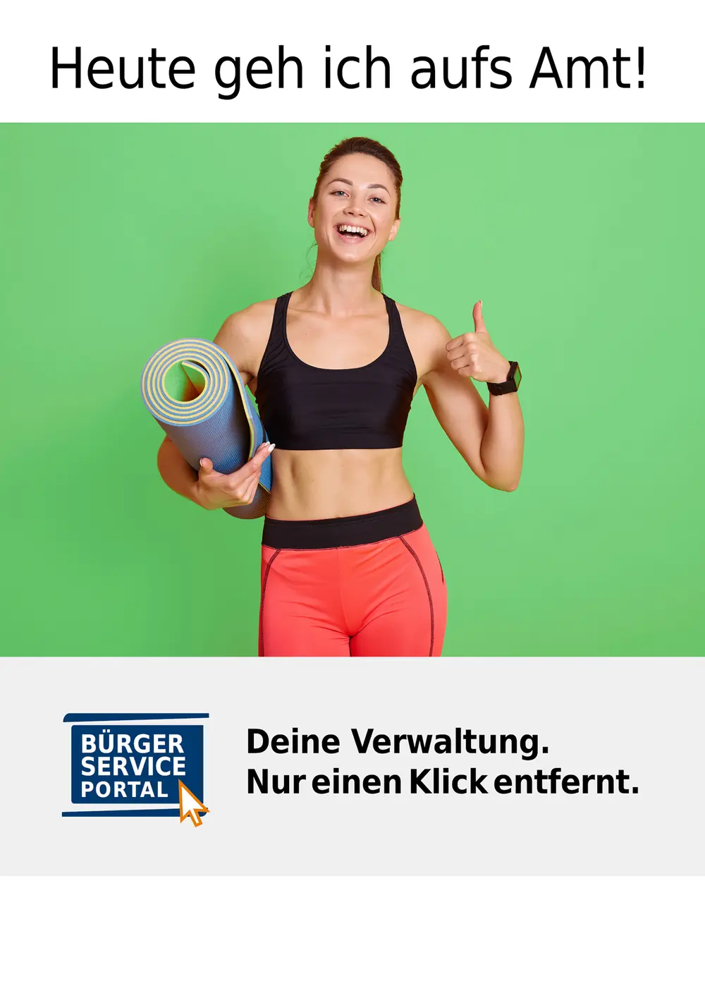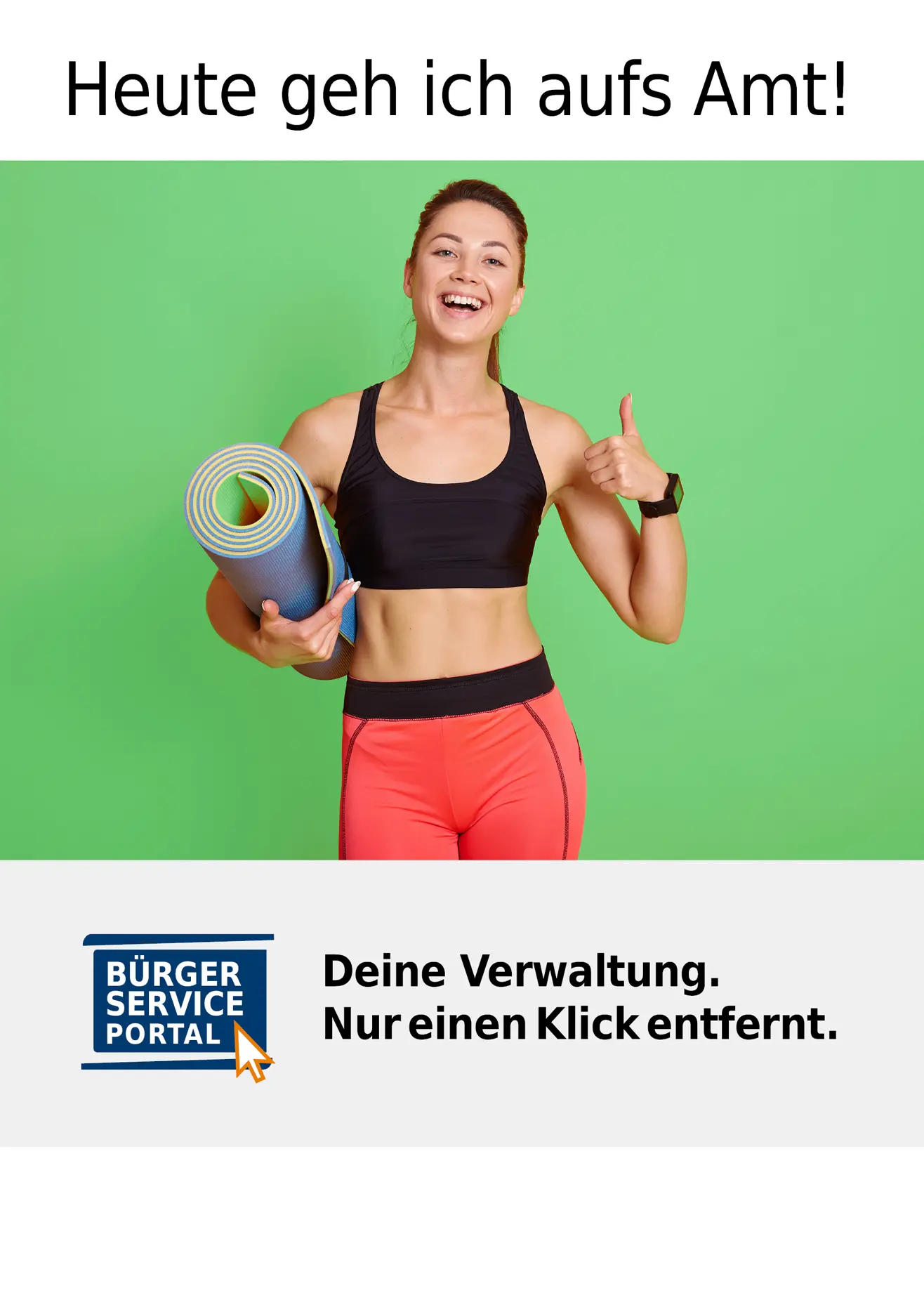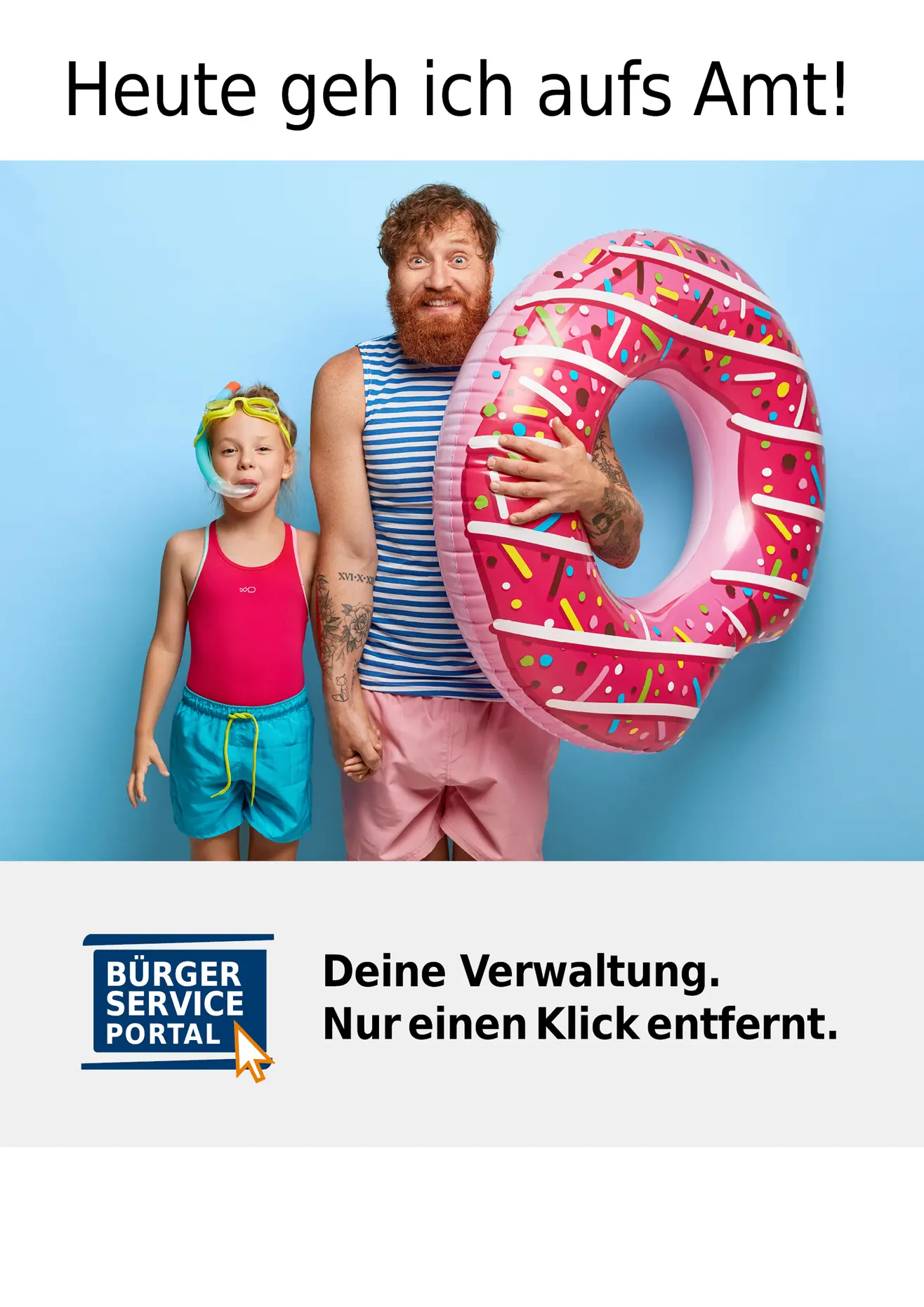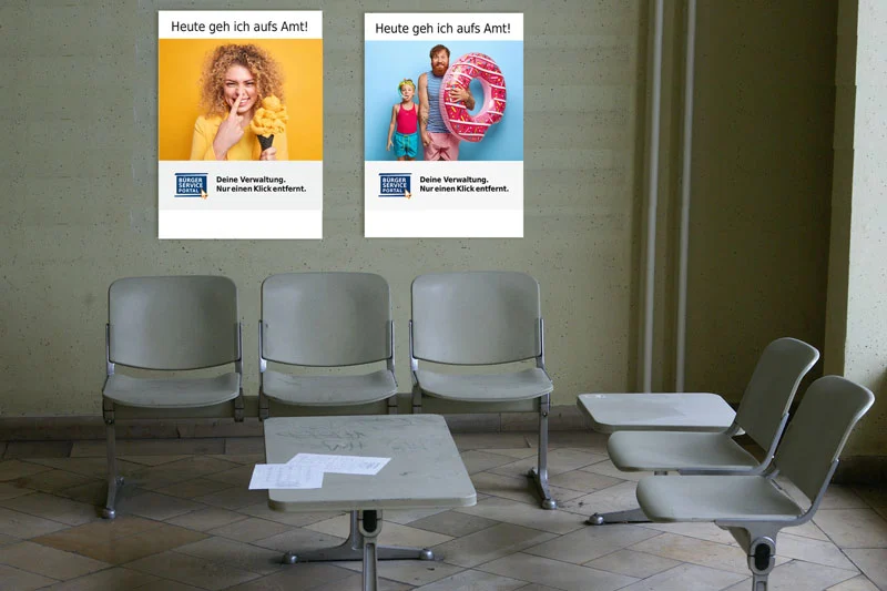 Um bayerische Bürger auf die große Bandbreite vorhandener Online-Dienste im Bürgerservice-Portal aufmerksam zu machen, haben wir eine Werbekampagne entwickelt. Vorlagen für Anzeigen, Plakate, Flyer und Online-Banner mit dem Slogan „Deine Verwaltung. Nur einen Klick entfernt“ stehen Ihnen hier zum Download kostenlos zur Verfügung. Mit Download und öffentlicher Verwendung der hier zur Verfügung gestellten Vorlagen und Materialien stimmen Sie den Nutzungsbedingungen zu.