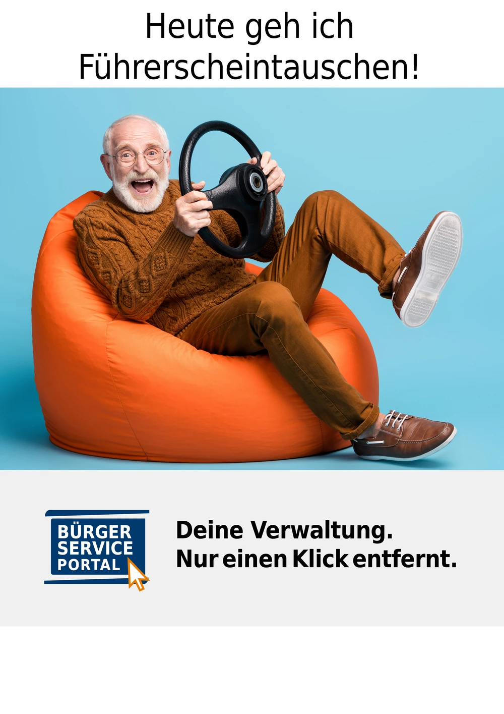 Text in der Anzeige: Du hast gerade keine Zeit, Dich für den Führerschein-Pflichtumtausch im Amt anzustellen? Und Nummern