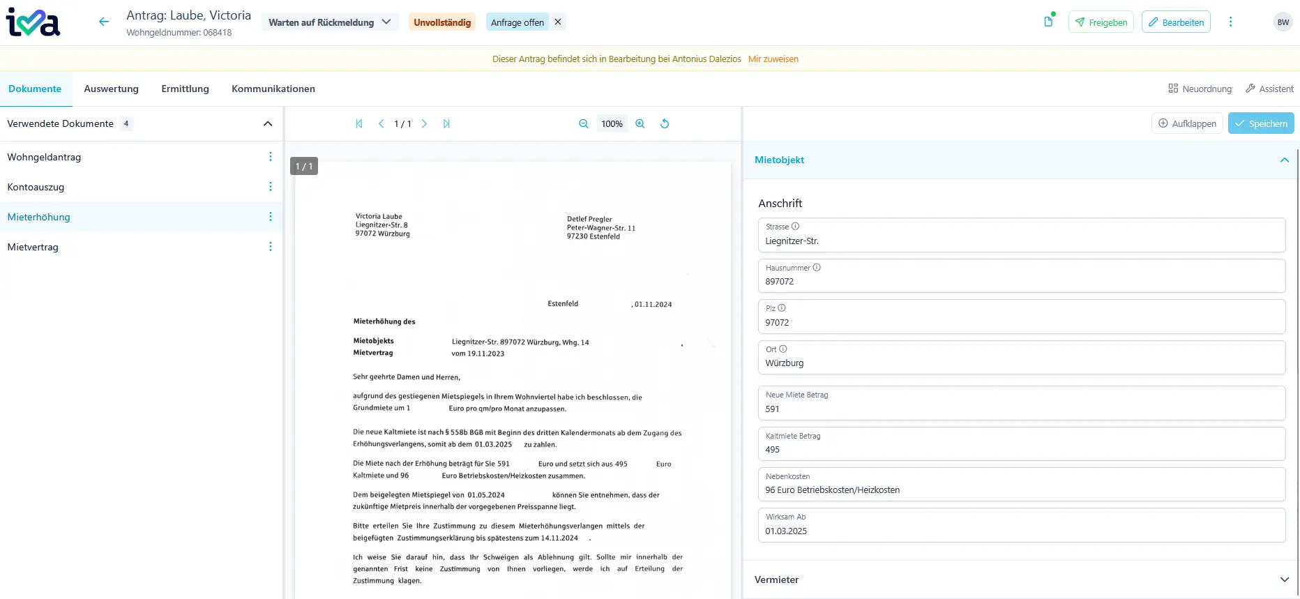 - Die finale Entscheidung obliegt immer den Sachbearbeitenden: iva unterstützt, übernimmt aber keine abschließende Bewertung.