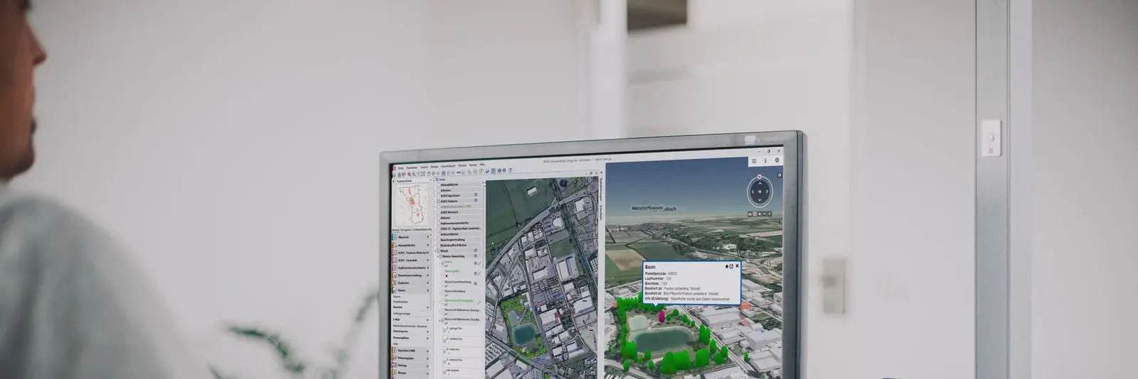 3D-Stadtmodelle - auch bekannt als Digitale Zwillinge-, ein breites Angebot für Smart Cities und Communities sowie Schnittstellen zu AKDB-Anwendungen runden das Angebot ab. Zudem ist
