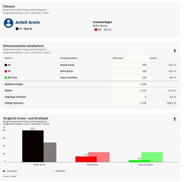 - Ergebnispräsentation: Standardisiert oder individuell angepasst – für jede Wahlart verfügbar
