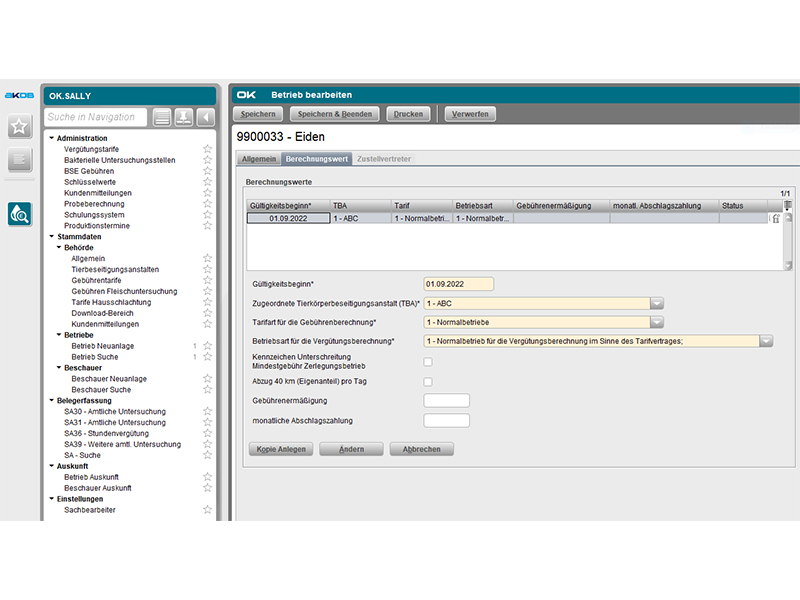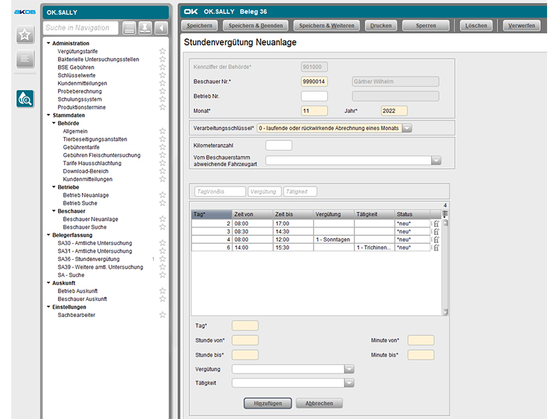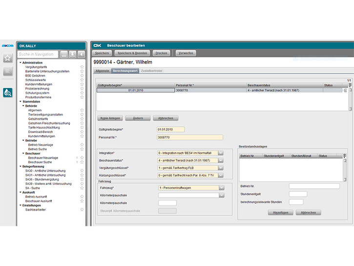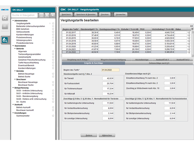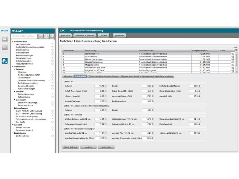 OK.SALLY: Abrechnung und Statistik in der Lebensmittelhygiene (Fleischbeschau)