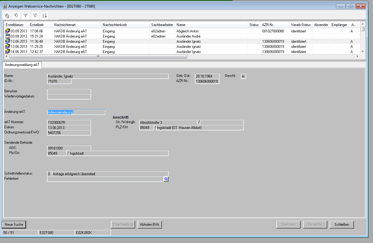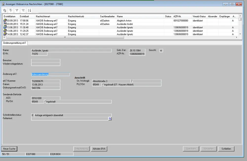 - Bundesverwaltungsamt (BVA): Übermittlung von Nachrichten zu Sicherheitsanfragen und zur Beteiligung der Bundesagentur für Arbeit