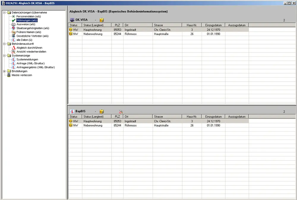 - Bayerisches Behördeninformationssystem – BayBIS: Ermittlung und Übernahme der aktuellen Anschriften von in Bayern gemeldeten Bürgern in OK.VISA