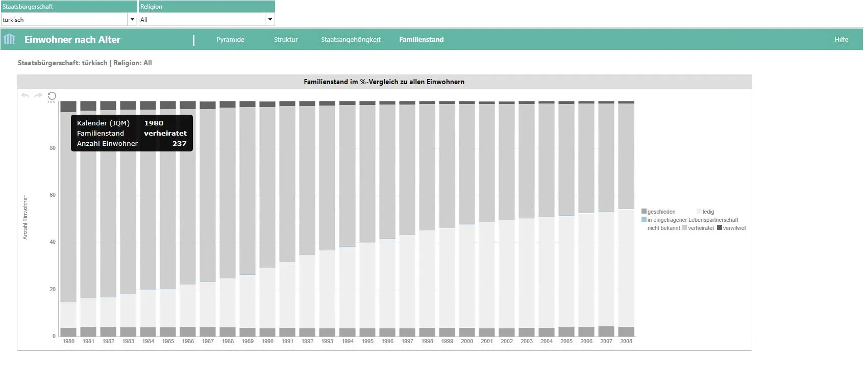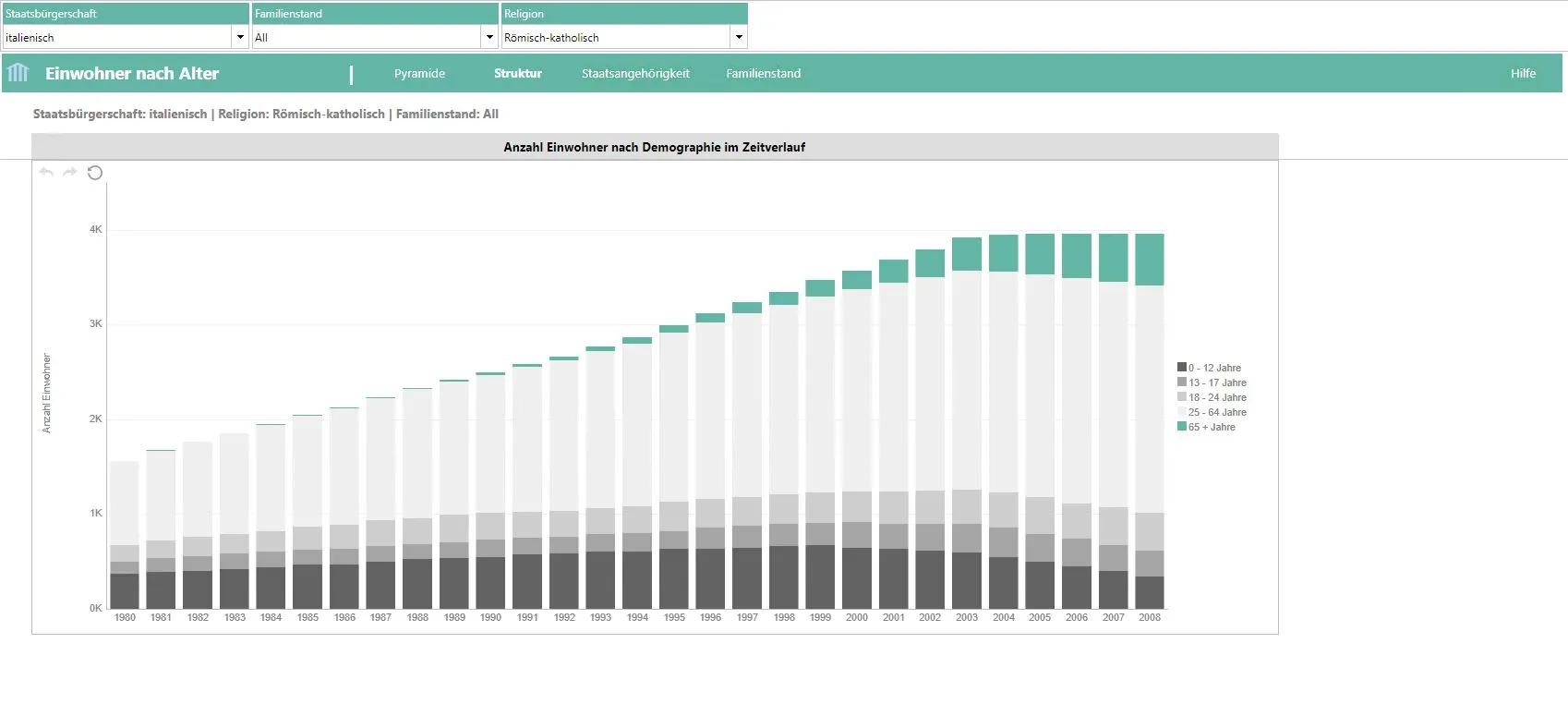 Meistern Sie die Herausforderung, komplexe Daten effizient zu nutzen und Ihre Entscheidungen auf eine tragfähige Basis fundierter Daten zu stellen: Analysieren und Strukturieren sie Geschlechter, Konfessionen, Altersgruppen, Zu- und Wegzüge und vieles mehr.