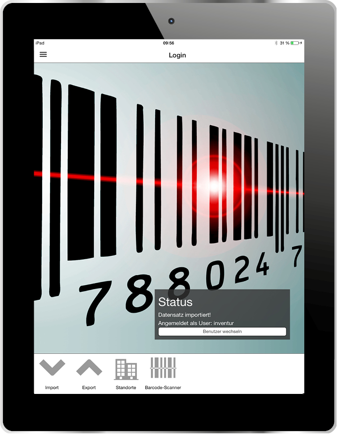 - Die Vermögensgegenstände werden per Bestandsliste überprüft oder mittels Bluetooth-Barcode-Scanner der aufgeklebten Barcodeetiketten erkannt und automatisch zurückgemeldet.