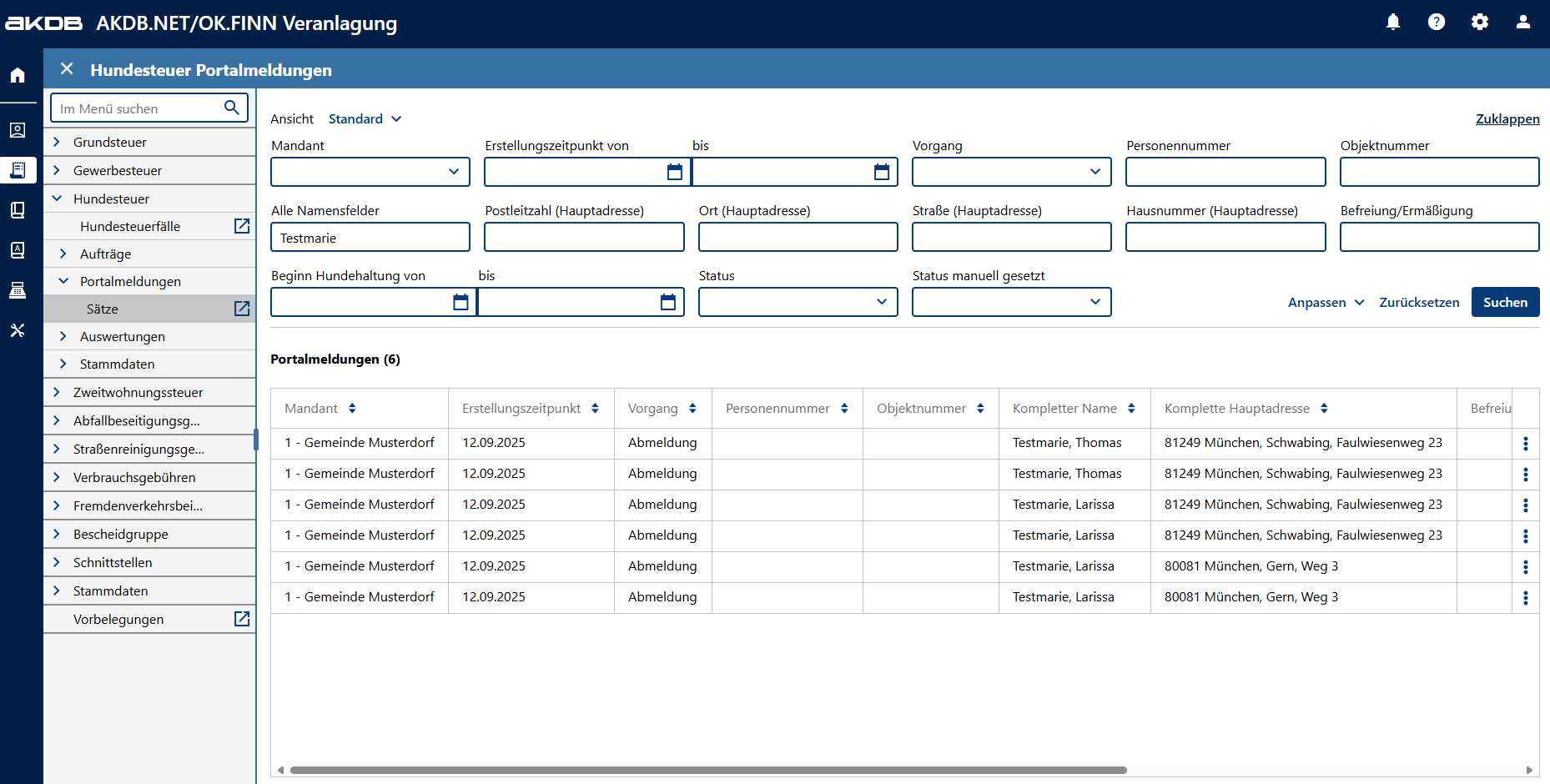 Bearbeiten Sie Ihre Hundesteuerfälle mit abschließender Festsetzung, Bescheiderstellung und Übergabe der Sollstellungen an die Buchhaltung. Durch die Portalanbindung erhalten Sie über eine Schnittstelle die Hundesteueranmeldungen, -abmeldungen und -ummeldungen und können diese in wenigen Schritten vollständig bearbeiten. Über die Stammdatenpflege können sämtliche Besonderheiten einzelner Hundesteuersatzungen abgebildet werden.