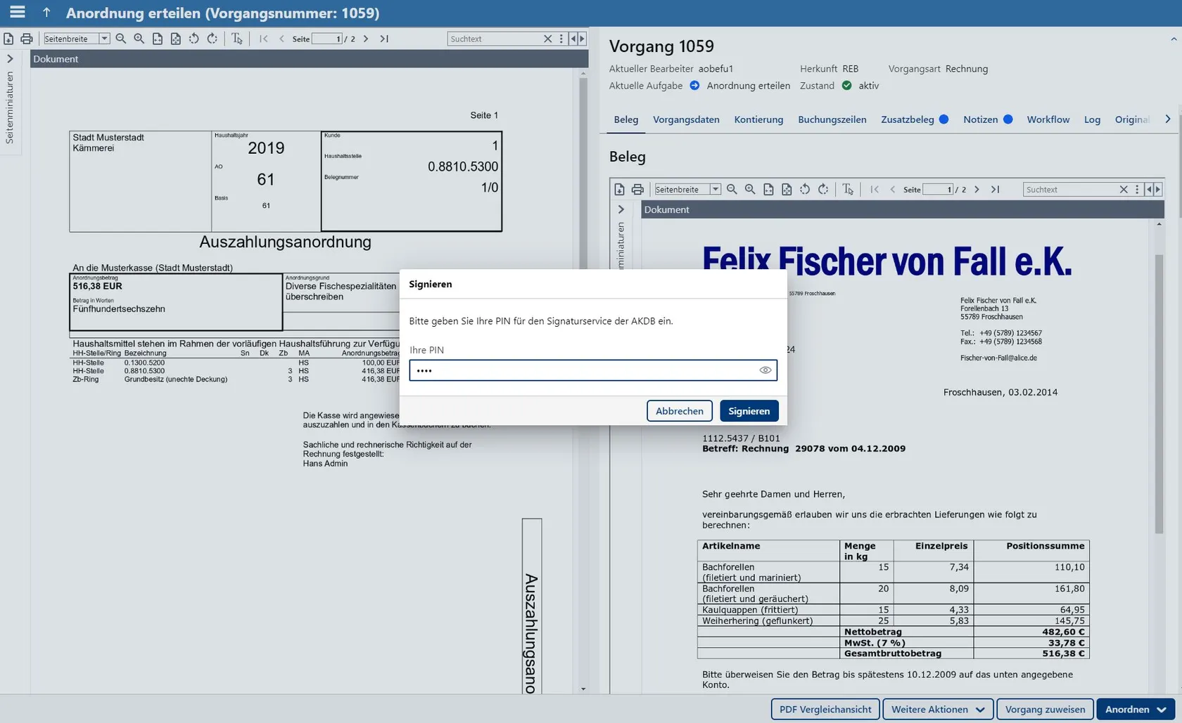 - Digitale Unterschriften von Feststellung der sachlichen und rechnerischen Richtigkeit bis zur Freigabe der Anordnung