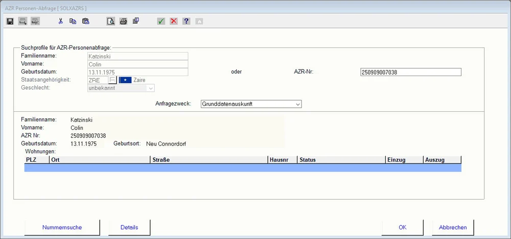 - Suchergebnisse aus dem AZR bei einer Personenneuanlage können in OK.SOZIUS automatisch übernommen werden.