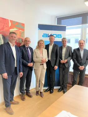 Die Gründungssitzung der Genossenschaft fand im Januar bei der AKDB statt. Gründungsmitglieder sind die Stadt Straubing, der Landkreis Nürnberger Land, der Landkreis Unterallgäu, der Schulverband Helmstadt, die Verwaltungsgemeinschaft Helmstadt, die AKDB sowie die AKDB-Dienstleistungs- und Service GmbH. Die Aufsichtsgremien der AKDB, in denen unter anderem die vier bayerischen kommunalen Spitzenverbände durch ihre jeweiligen Geschäftsführenden Präsidialmitglieder bzw. Vorstandsmitglieder vertreten sind, haben das Vorhaben Ende letzten Jahres mit großer Zustimmung beschlossen und so auf den Weg gebracht. Trotz voller Terminkalender fand ein Vor-Ort-Termin statt.