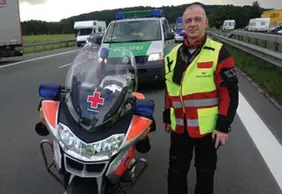 Seit 29 Jahren bin ich ehrenamtlich für das BRK tätig. Ich finde es wichtig, dass man sich in die Gesellschaft einbringt. Als Rettungssanitäter bin ich vor allem auf San- Diensten, im Rettungsdienst und meiner großen Leidenschaft, der BRK-Motorradstreife. Ich bin eine Art First-Responder auf bayerischen Autobahnen. In der Stadt und im Landkreis Rosenheim unterstütze ich außerdem bei Großschadensereignissen und Katastrophen die Einsatzleitung.