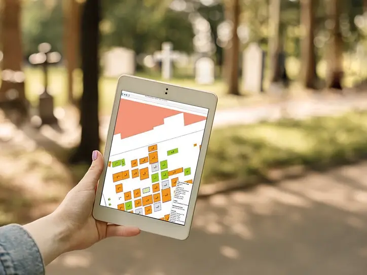Vor diesem Hintergrund bietet die Digitalisierung eine vielversprechende Möglichkeit, um die Effizienz der Friedhofsverwaltung zu steigern und die finanziellen Ressourcen besser zu nutzen. Die RIWA GmbH hat eine speziell für Kommunen entwickelte Lösung geschaffen, die eine transparente und automatisierte Verwaltung ermöglicht. Herzstück dieser Lösung ist der digitale Friedhofsplan. Er verknüpft geografische und fachliche Informationen und bietet eine fortschrittliche, GIS-basierte Übersicht über belegte, freie oder gesperrte Flächen. Dies verbessert nicht nur die Verwaltung von Grabnutzungsrechten, sondern schafft auch Klarheit und Ordnung im friedhofsinternen Betriebsablauf.