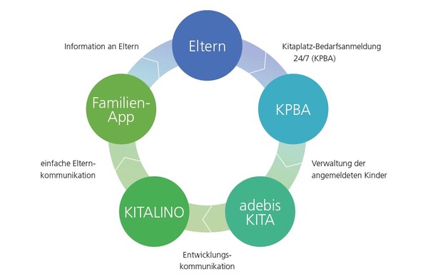 Corona hat einmal mehr gezeigt, wie wichtig ein reibungsloses Kitamanagement ist. Und eine schnelle Kommunikation mit Eltern. Bei chronischem Fachkräftemangel keine leichte Aufgabe. Besonders wenn vor lauter Verwaltungsaufgaben weniger Zeit für den eigentlichen pädagogischen Auftrag bleibt. Seit neuestem können Kommunen und Kitas allerdings eine ganzheitliche Lösung der AKDB nutzen, mit der sie ihren Kita-Alltag optimal managen können: Von der online ausgeführten Kitaplatz-Bedarfsanmeldung über die zentrale Platzvergabe, die Verwaltung von Kinderbetreuungseinrichtungen, die gesetzlich vorgeschriebene, pädagogische Dokumentation bis hin zur Elternkommunikation. Die AKDB positioniert sich so als Systemanbieter, der zur digitalen Transformation in den Kitas beiträgt. Dabei fußt das Komplettangebot auf drei Säulen: