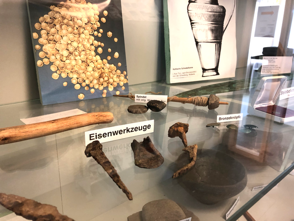 Betritt man das Rathaus der Gemeinde Altendorf bei Bamberg, so entdeckt man eine Glastheke voller Schätze: Kämme, Ketten, Bronzeknöpfe, Glasperlen und Eisenbeile aus der frühen Eisenzeit. Und Silbermünzen aus dem 1. Jahrhundert vor Christus. Auf der einen ist ein Pferd mit kunstvoll geflochtener Mähne klar erkennbar. Es ist eine Münze aus der Zeit, als es in der Gegend um Bamberg eine blühende keltische Zivilisation gab. Das Pferd, das heute noch das Gemeindewappen ziert, war ein Statussymbol und das Zeichen für Reichtum und Macht. Und der Reichtum war tatsächlich groß in der Gegend um die Regnitz. Hier hat es damals wohl eine der größten keltischen Talsiedlungen in Nordbayern gegeben. Offensichtlich war die geografische Lage sehr günstig, um Handel zu betreiben.