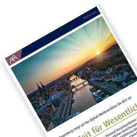 Die Verwaltung der Stadt Regensburg zählt über 4.300 Mitarbeitende. Das sind ca. 1.200 Beamtinnen und Beamte sowie ca. 3.100 Tarifbeschäftigte. Außerdem unterhält die Stadt drei Berufsschulen, ein Gymnasium und eine Musikschule, in denen ca. 400 Lehrkräfte beschäftigt sind. Alle Personalkosten inklusive Beihilfen belaufen sich auf gut 270 Mio. Euro. Insgesamt werden mehr als 6.000 Abrechnungsfälle im Monat betreut. Die Stadt will ihre Prozesse verschlanken, um mehr Zeit für Wesentliches zu haben. Da kam das Angebot der AKDB gerade richtig: Der Wechsel auf ein komplett digitales, zertifiziertes Verfahren sollte es den Personalmitarbeitenden ermöglichen, wichtige Meldebescheinigungen - wie Arbeitsbescheinigung, EU-Arbeitsbescheinigung und Nebeneinkommensbescheinigung - einfach und digital zu berechnen und an die Bundesagentur für Arbeit zu senden.