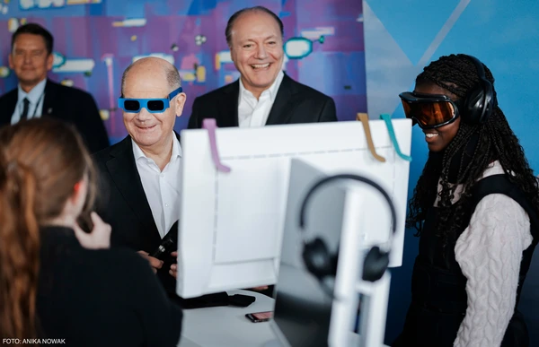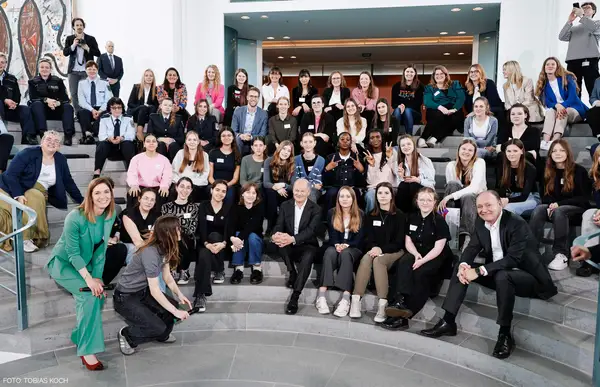 Am 1. April 2025 startete der Girls' Day mit dem alljährlichen Auftakt im Bundeskanzleramt. 24 Schülerinnen aus drei Berliner Schulen hatten die Gelegenheit, gemeinsam mit Bundeskanzler Olaf Scholz und Marc Reinhardt, Präsident der Initiative D21, die Vielfalt der MINT-Berufe kennenzulernen.