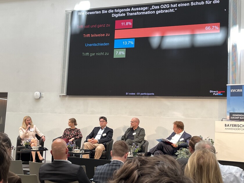 Vertreter von Kommunen, der Handwerkskammer und vom Bayerischen Digitalministerium waren sich einig, dass die OZG-Umsetzung schneller in die Fläche kommen muss. Dafür müsse der Bund Gesetze verabschieden, die die digitale Anwendung bereits berücksichtigen. Sonst riskiert E-Government zu scheitern.