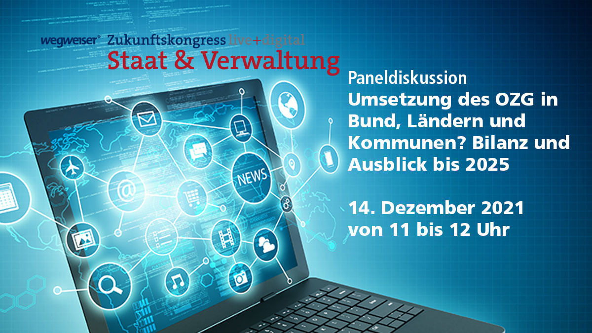 Der 8. Zukunftskongress Staat&Verwaltung in Berlin ist Corona-bedingt auf Juni 2022 verschoben, aber die Verwaltungsdigitalisierung steht nicht still. Denn es bleibt noch ein Jahr zum Termin im Dezember 2022: Dann müssen Bund, Länder und Kommunen ihre Verwaltungsleistungen über Verwaltungsportale auch digital anbieten. Das sind fast 600 Online-Dienste.