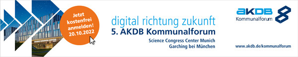 Kommen Sie am 20. Oktober mit uns digital richtung zukunft! So heißt das Motto des 5. AKDB Kommunalforums. Denn es geht um die ganz großen Zukunftsfragen rund um die Digitalisierung Ihrer Verwaltung. Entdecken Sie jetzt alle Programm-Highlights auf unserer Veranstaltungs-Website. Und melden Sie sich noch heute an!