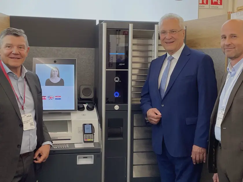 Prominenter Besuch für die Bürgerservice-Box: Auf der 21. Sicherheitsexpo in München konnte sich auch der Bayerische Innenminister Joachim Herrmann von den Vorteilen der Abholstation für amtliche Dokumente überzeugen.