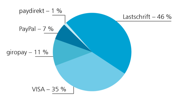 Die häufigste gewählte Zahlart bei der E-Payment-Abwicklung ist in diesem Jahr bislang mit 46 Prozent das Lastschriftverfahren, gefolgt von der Zahlung per VISA-Kreditkarte (35 %), giropay (11 %), PayPal (7 %) und paydirekt (1 %). E-Payment als einer der E-Government-Basisdienste wird vom Freistaat Bayern allen bayerischen Gebietskörperschaften betriebskostenfrei zur Verfügung gestellt, genau wie etwa die BayernID.