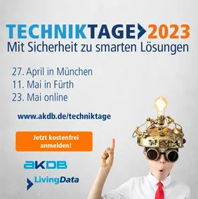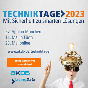 Unter dem Motto „Mit Sicherheit zu smarten Lösungen“ finden an drei Terminen zwischen April und Mai wieder die Techniktage von AKDB und ihrer Systemhaustochter LivingData statt. Eingeladen sind IT-Experten in Kommunen. Im Fokus: Vorteile der Cloud, Smart Community-Lösungen sowie Informationssicherheit und Managed Services.
