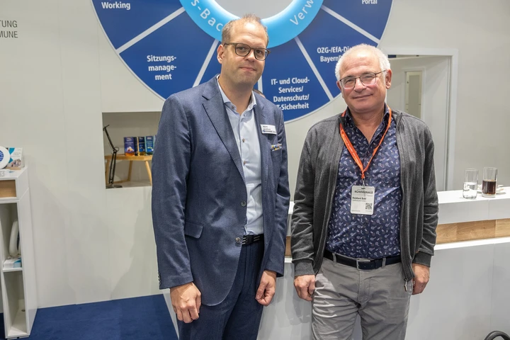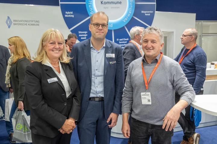 Neben Kommunalvertretern – hauptsächlich Bürgermeister, IT-Leiter und Sachbearbeitende – gab es auch Besuch von den Ministerien: AKDB-Vorstand und Reinhard Kofler (RIWA) zeigten Dr. Hans Michael Strepp vom Bayerischen Digitalministerium und Cordula Kießling vom Bundesinnenministerium die Vorteile der Smart Data Services für die Zukunft nachhaltiger Kommunen. Am ersten Messetag fand ein Pressegespräch mit zahlreichen Pressevertretern führender Fachmagazine statt. Und dann gab es noch die Unterzeichnung eines „letter of intent“ zur Zusammenarbeit zwischen AKDB und der Firma KEBA. Mit den Dokumentenausgabe-Systemen von KEBA können künftig Personalausweise, Reisepässe oder Aufenthaltsdokumente, die online über Online-Dienste der AKDB beantragt wurden, einfach an einer Paketstation abgeholt werden.